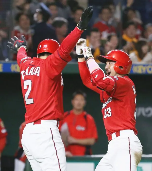 8回に、阪神は佐藤輝明のタイムリーで得点が入ると、左翼席も総立ちになった。